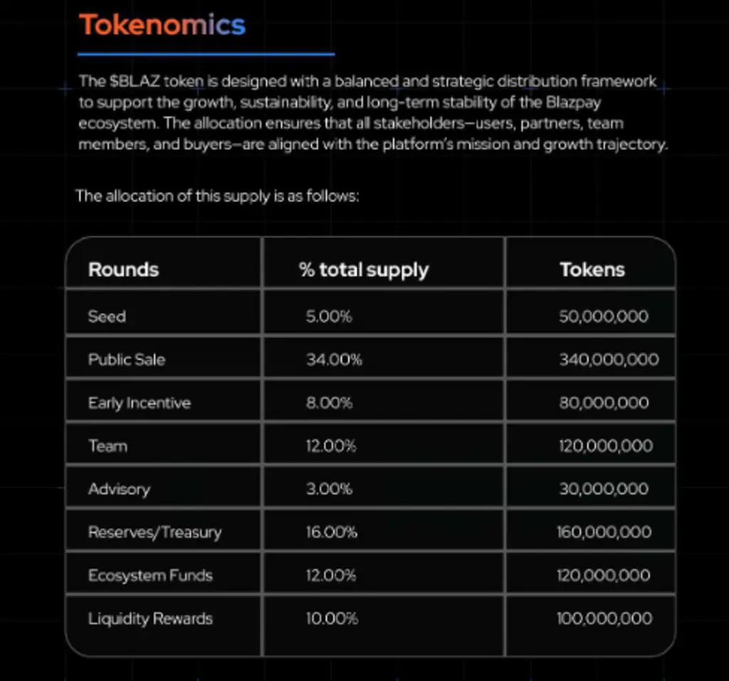 The $BLAZ token serves as the central fuel for the Blazpay ecosystem. It’s used for in-app payments, staking, governance, and transaction fees.